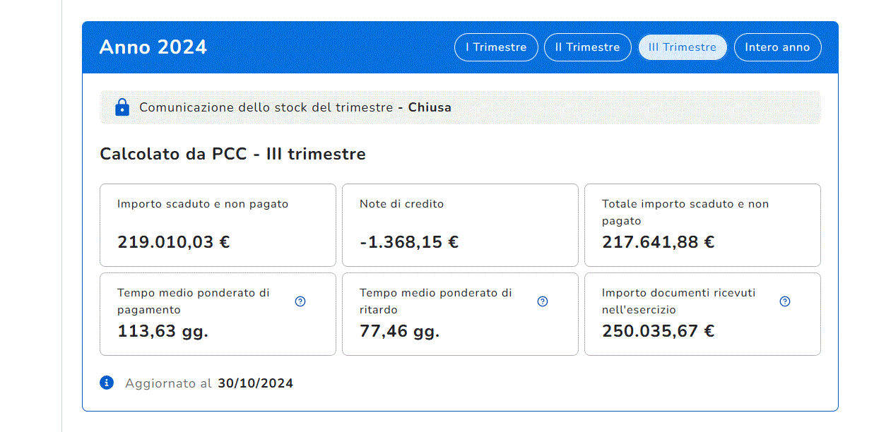 STOCK DEL DEBITO - III° TRIMESTRE 2024